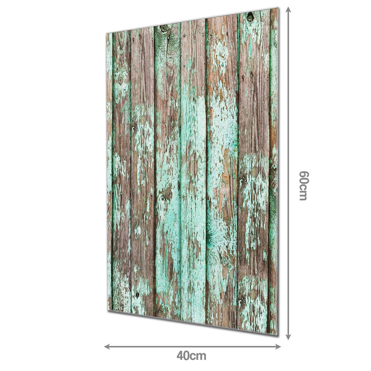 Material: 4mm Sicherheitsglas mit Metallrückwand Eigenschaften: beschreibbar, magnetisch, kratzfest Maße: 40x60x0,6cm, 3,60 kg schwer Motiv Nummer 12180 Verwittertes Holz Zubehör: inklusive 4 Neodym-Magnete