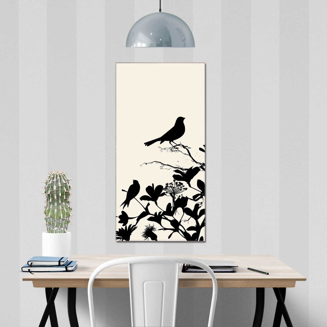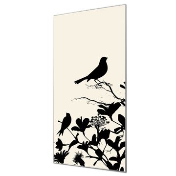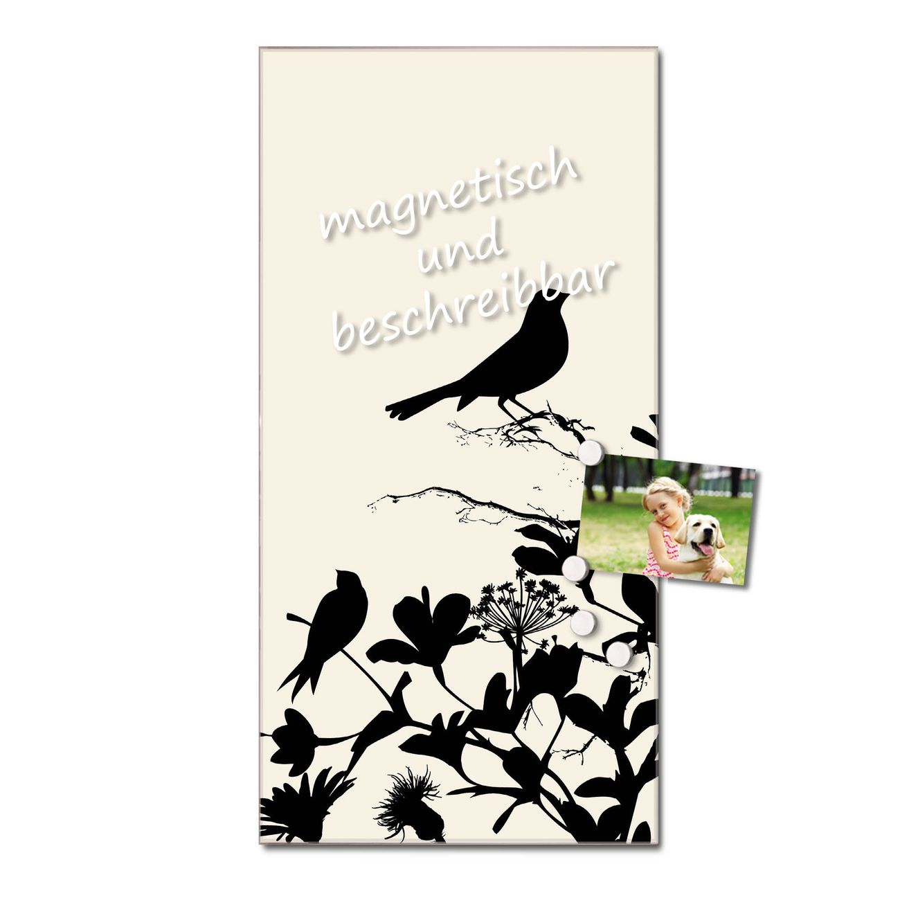 Material  4mm Sicherheitsglas mit Metallrückwand Eigenschaften  beschreibbar, magnetisch, kratzfest Maße  60x120x0,6cm, 10,80 kg schwer Motiv  Nummer 12070 Vögel Schattenriß Zubehör  inklusive 4 Neodym-Magnete