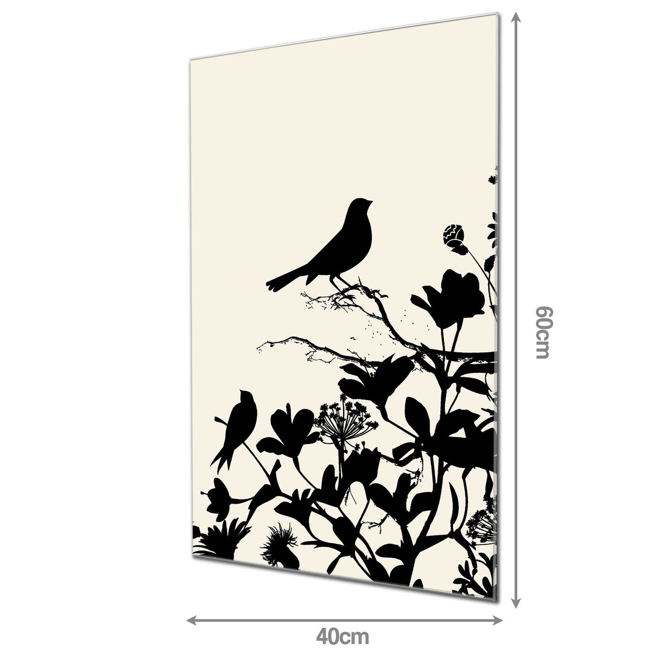 Material: 4mm Sicherheitsglas mit Metallrückwand Eigenschaften: beschreibbar, magnetisch, kratzfest Maße: 40x60x0,6cm, 3,60 kg schwer Motiv Nummer 12070 Vögel Schattenriß Zubehör: inklusive 4 Neodym-Magnete