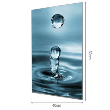 Material: 4mm Sicherheitsglas mit Metallrückwand Eigenschaften: beschreibbar, magnetisch, kratzfest Maße: 40x60x0,6cm, 3,60 kg schwer Motiv Nummer 10139 Wassertropfen Zubehör: inklusive 4 Neodym-Magnete