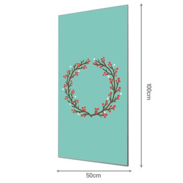 Material: 4mm Sicherheitsglas mit Metallrückwand Eigenschaften: beschreibbar, magnetisch, kratzfest Maße: 50x100x0,6cm, 7,50 kg schwer Motiv Nummer 12540 Weihnachtsranke Zubehör: inklusive 4 Neodym-Magnete