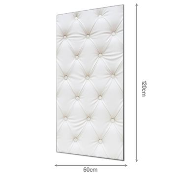 Material: 4mm Sicherheitsglas mit Metallrückwand Eigenschaften: beschreibbar, magnetisch, kratzfest Maße: 60x120x0,6cm, 10,80 kg schwer Motiv Nummer 11413 Weißes Polster Zubehör: inklusive 4 Neodym-Magnete