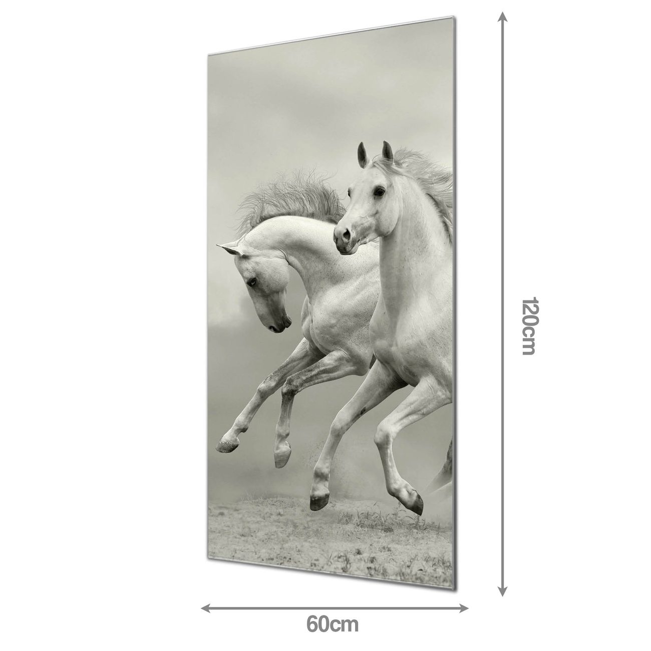 Material: 4mm Sicherheitsglas mit Metallrückwand Eigenschaften: beschreibbar, magnetisch, kratzfest Maße: 60x120x0,6cm, 10,80 kg schwer Motiv Nummer 11361 Wilde Pferde SW Zubehör: inklusive 4 Neodym-Magnete