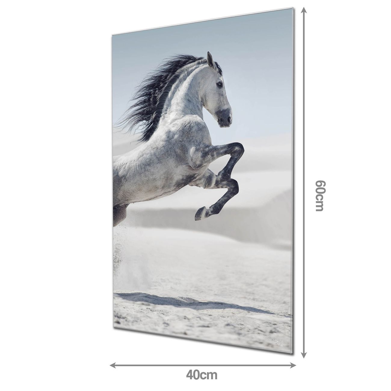 Material: 4mm Sicherheitsglas mit Metallrückwand Eigenschaften: beschreibbar, magnetisch, kratzfest Maße: 40x60x0,6cm, 3,60 kg schwer Motiv Nummer 10728 Wildes Pferd Zubehör: inklusive 4 Neodym-Magnete