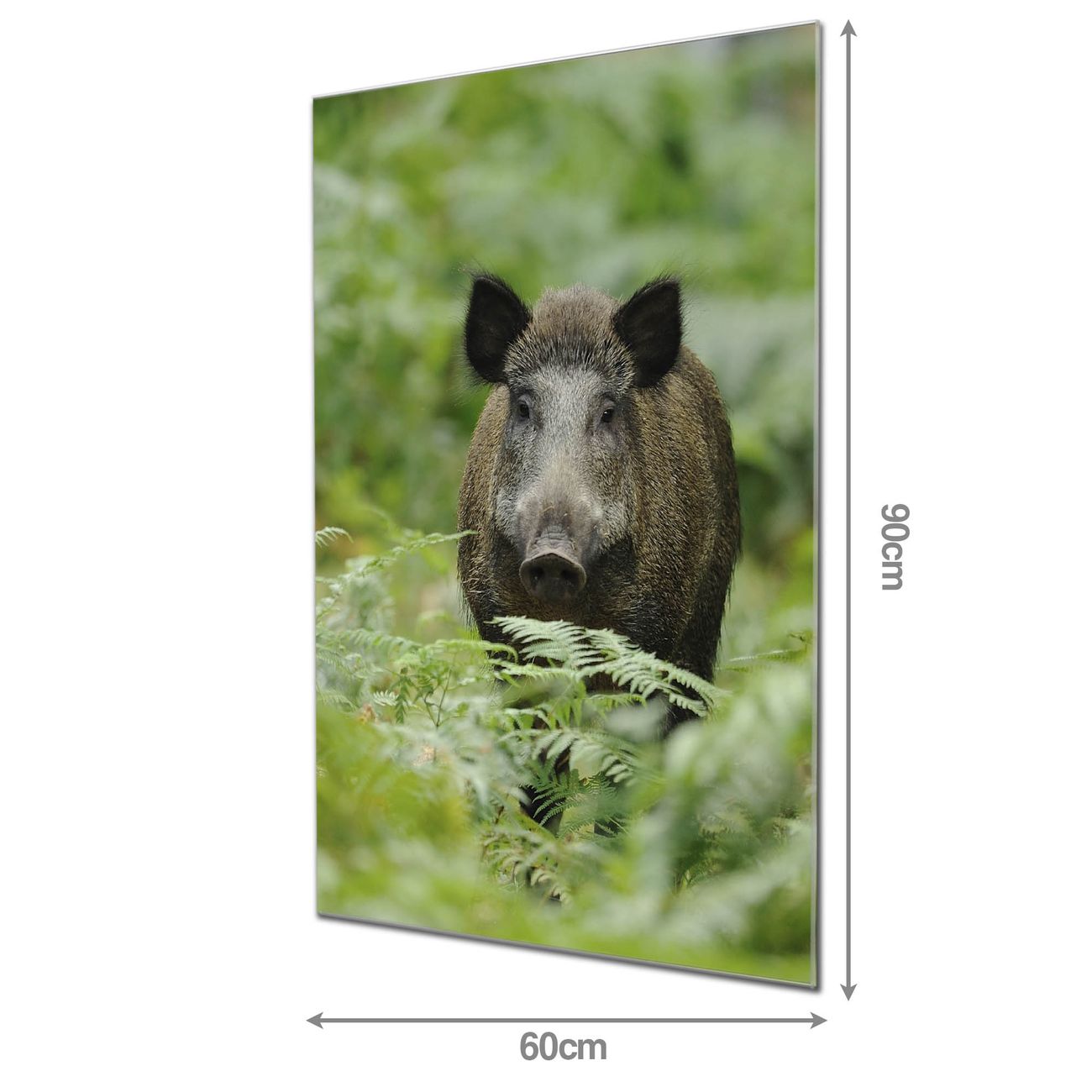 Material: 4mm Sicherheitsglas mit Metallrückwand Eigenschaften: beschreibbar, magnetisch, kratzfest Maße: 60x90x0,6cm, 8,10 kg schwer Motiv Nummer 10495 Wildschwein Zubehör: inklusive 4 Neodym-Magnete