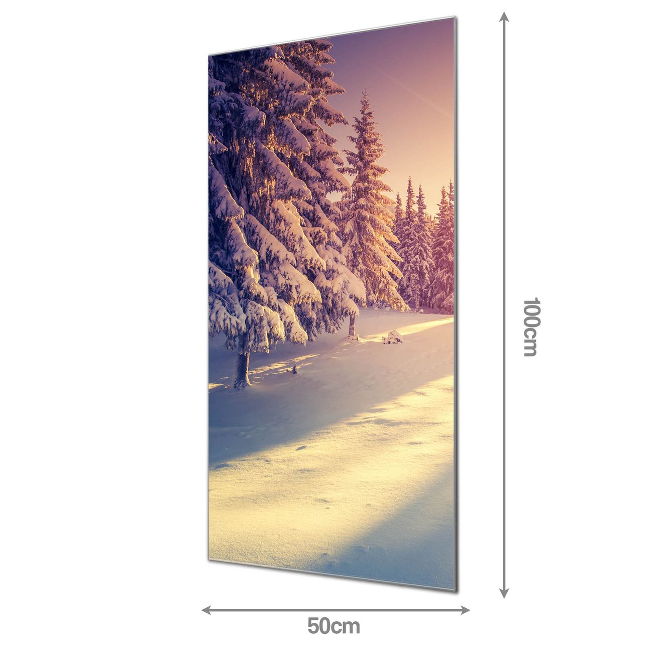 Material: 4mm Sicherheitsglas mit Metallrückwand Eigenschaften: beschreibbar, magnetisch, kratzfest Maße: 50x100x0,6cm, 7,50 kg schwer Motiv Nummer 12664 Winterabend Zubehör: inklusive 4 Neodym-Magnete
