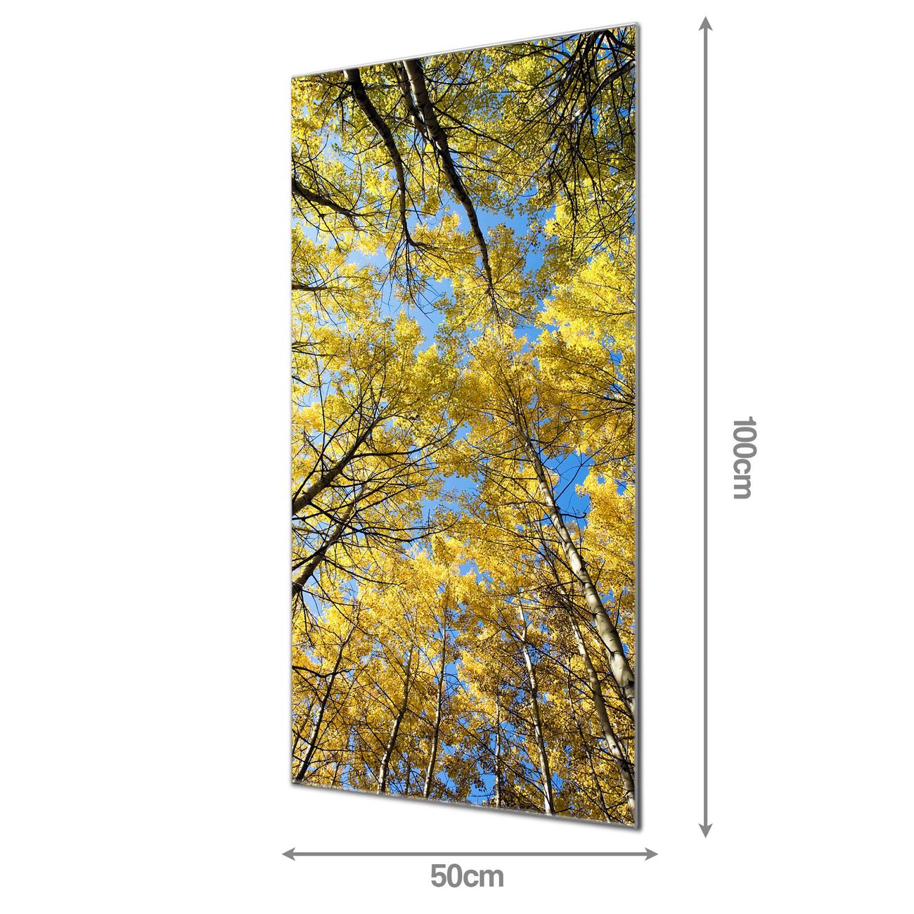 Material: 4mm Sicherheitsglas mit Metallrückwand Eigenschaften: beschreibbar, magnetisch, kratzfest Maße: 50x100x0,6cm, 7,50 kg schwer Motiv Nummer 12301 Wipfel Zubehör: inklusive 4 Neodym-Magnete