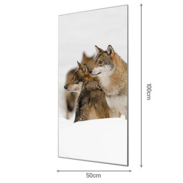 Material: 4mm Sicherheitsglas mit Metallrückwand Eigenschaften: beschreibbar, magnetisch, kratzfest Maße: 50x100x0,6cm, 7,50 kg schwer Motiv Nummer 10432 Wölfe Zubehör: inklusive 4 Neodym-Magnete