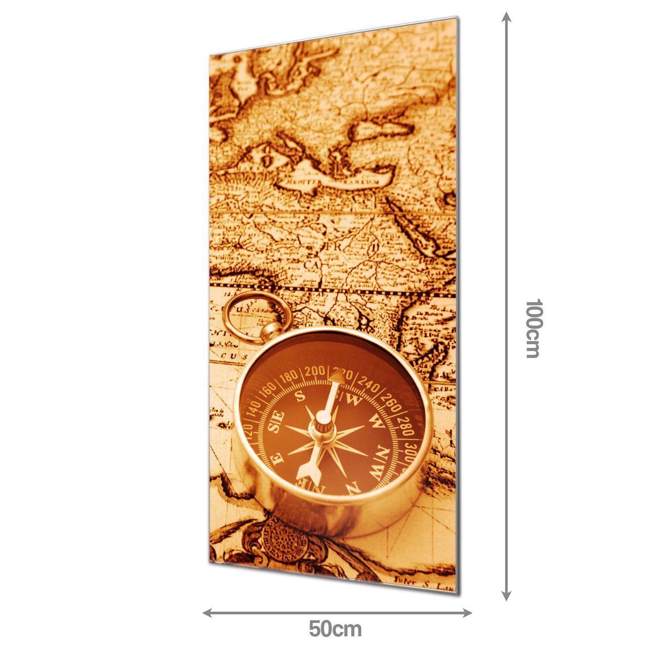 Material: 4mm Sicherheitsglas mit Metallrückwand Eigenschaften: beschreibbar, magnetisch, kratzfest Maße: 50x100x0,6cm, 7,50 kg schwer Motiv Nummer 10090 World Map Zubehör: inklusive 4 Neodym-Magnete