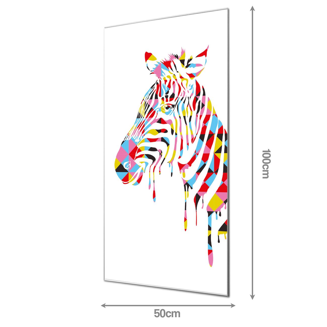 Material: 4mm Sicherheitsglas mit Metallrückwand Eigenschaften: beschreibbar, magnetisch, kratzfest Maße: 50x100x0,6cm, 7,50 kg schwer Motiv Nummer 12119 Zebra Zubehör: inklusive 4 Neodym-Magnete