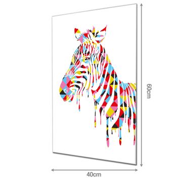 Material: 4mm Sicherheitsglas mit Metallrückwand Eigenschaften: beschreibbar, magnetisch, kratzfest Maße: 40x60x0,6cm, 3,60 kg schwer Motiv Nummer 12119 Zebra Zubehör: inklusive 4 Neodym-Magnete