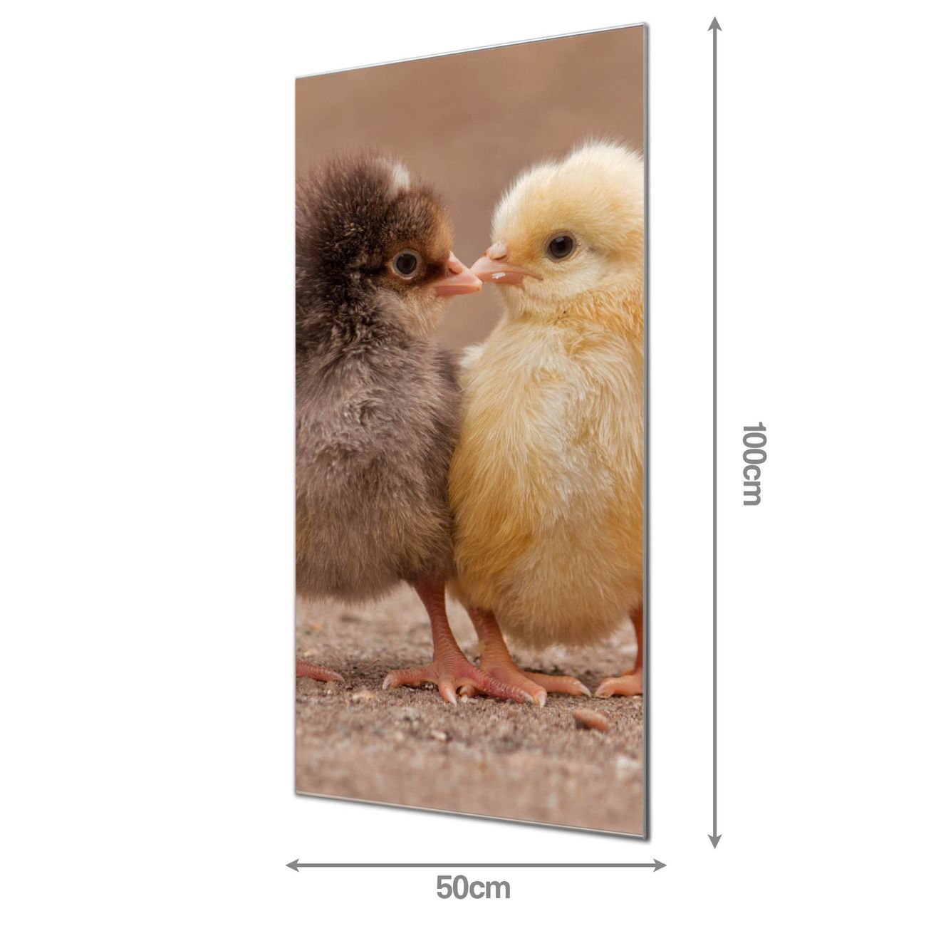 Material: 4mm Sicherheitsglas mit Metallrückwand Eigenschaften: beschreibbar, magnetisch, kratzfest Maße: 50x100x0,6cm, 7,50 kg schwer Motiv Nummer 12370 Zwei Küken Zubehör: inklusive 4 Neodym-Magnete