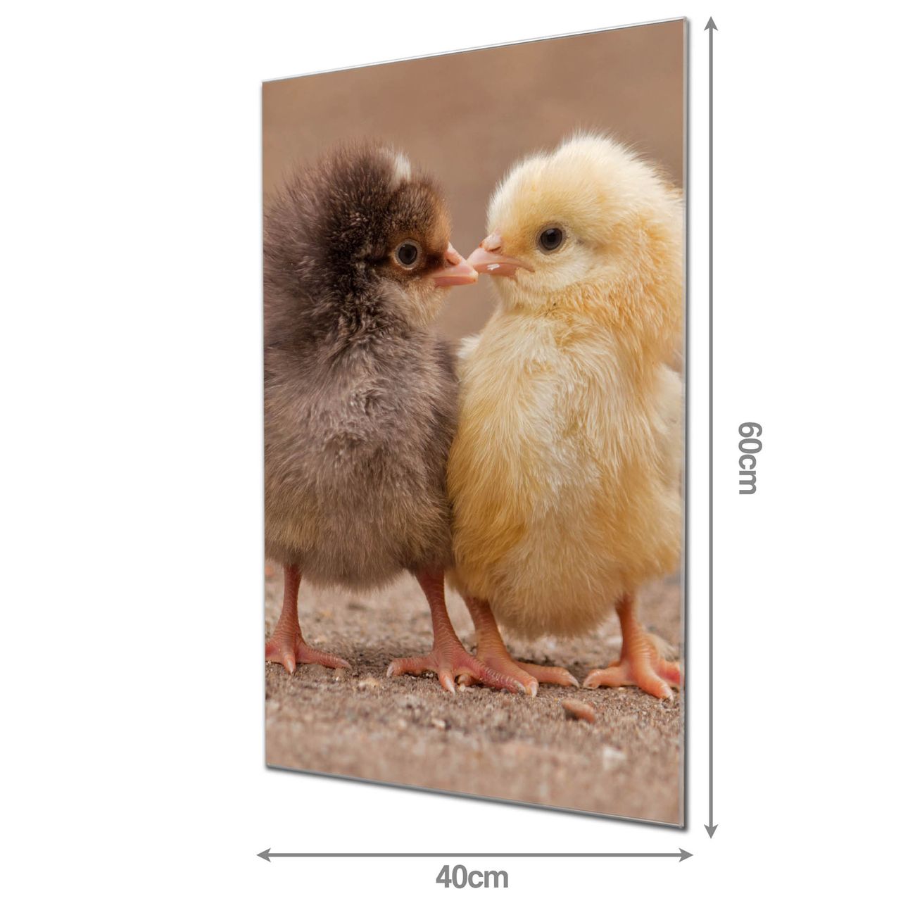 Material: 4mm Sicherheitsglas mit Metallrückwand Eigenschaften: beschreibbar, magnetisch, kratzfest Maße: 40x60x0,6cm, 3,60 kg schwer Motiv Nummer 12370 Zwei Küken Zubehör: inklusive 4 Neodym-Magnete