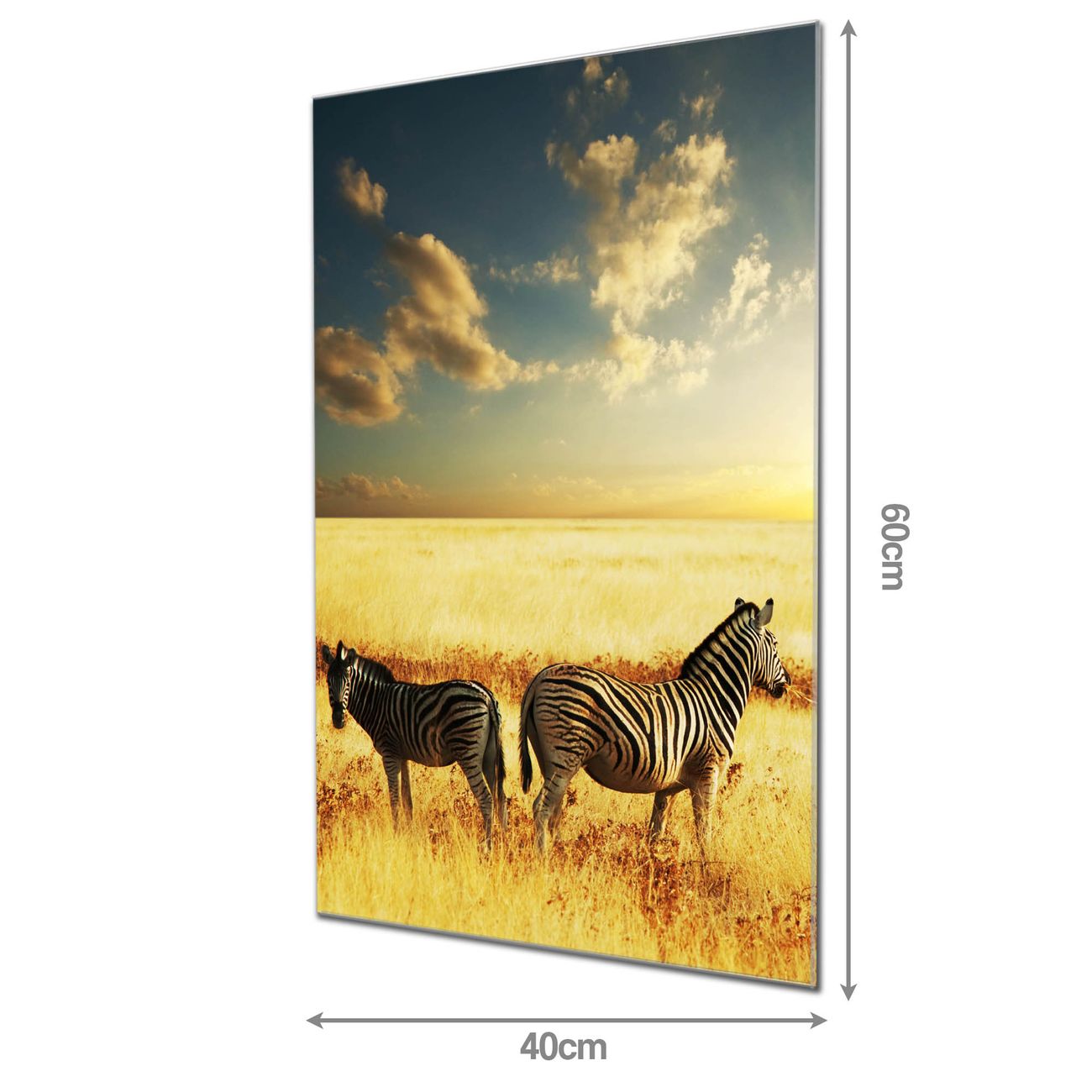 Material: 4mm Sicherheitsglas mit Metallrückwand Eigenschaften: beschreibbar, magnetisch, kratzfest Maße: 40x60x0,6cm, 3,60 kg schwer Motiv Nummer 12756 Zwei Zebras Zubehör: inklusive 4 Neodym-Magnete