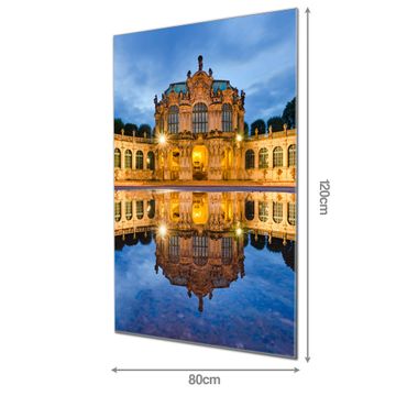 Material: 4mm Sicherheitsglas mit Metallrückwand Eigenschaften: beschreibbar, magnetisch, kratzfest Maße: 80x120x0,6cm, 14,40 kg schwer Motiv Nummer 12421 Zwinger Dresden Zubehör: inklusive 4 Neodym-Magnete