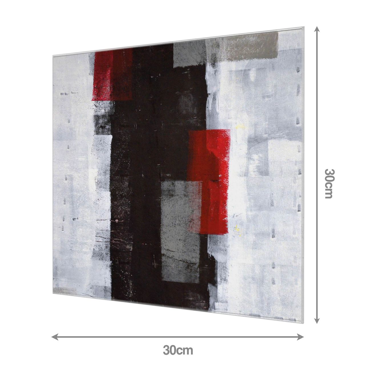 Material: 4mm Sicherheitsglas mit Metallrückwand Eigenschaften: beschreibbar, magnetisch, kratzfest Maße: 30x30x0,6cm, 1,89 kg schwer Motiv Nummer 11556 Abstrakt Rot Zubehör: inklusive 4 Neodym-Magnete
