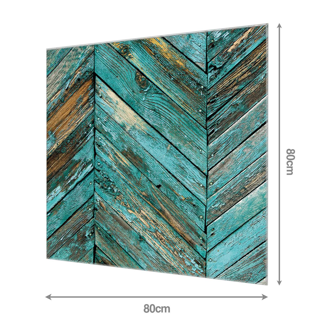 Material: 4mm Sicherheitsglas mit Metallrückwand Eigenschaften: beschreibbar, magnetisch, kratzfest Maße: 80x80x0,6cm, 12,00 kg schwer Motiv Nummer 11355 Altes Holz Blau Zubehör: inklusive 4 Neodym-Magnete