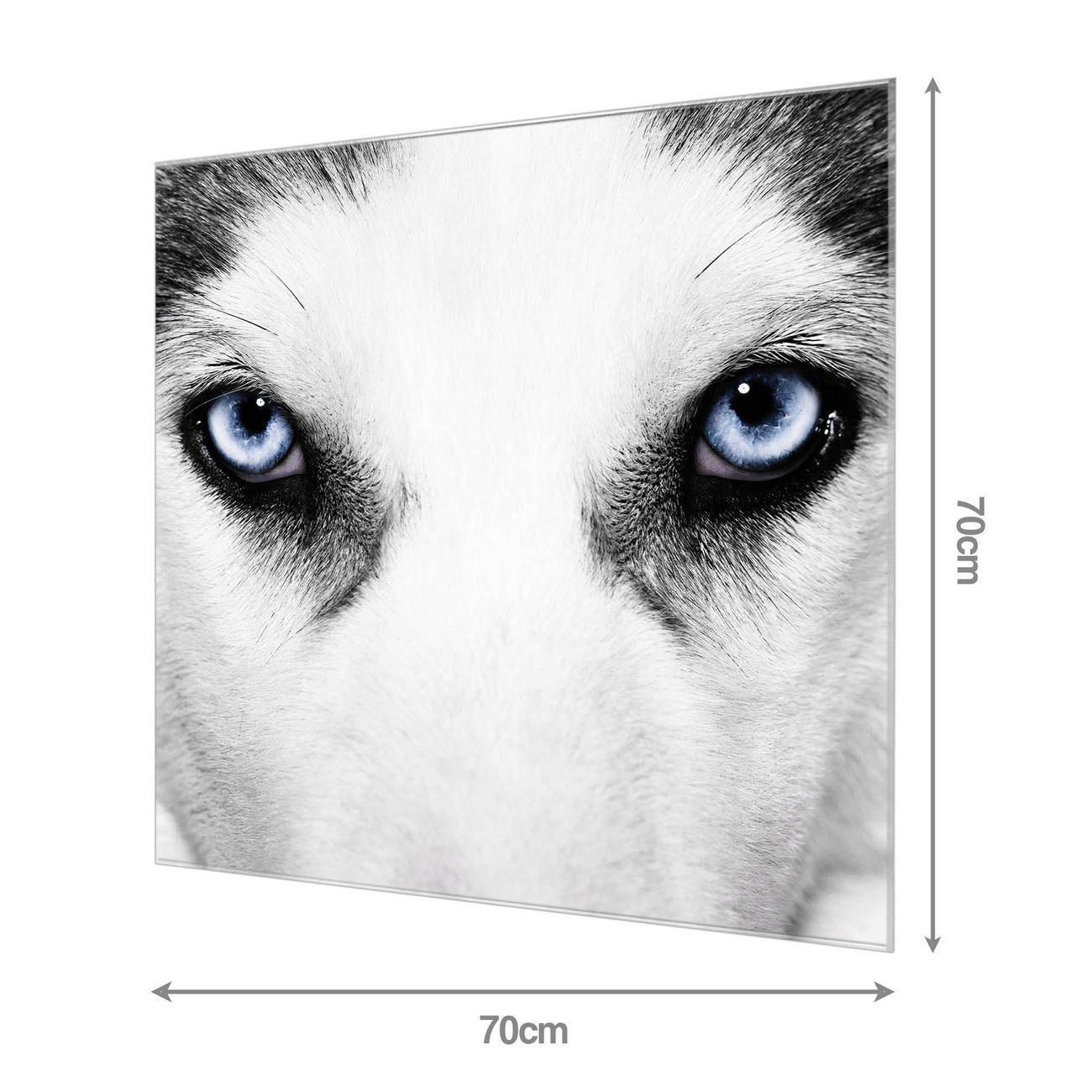 Material: 4mm Sicherheitsglas mit Metallrückwand Eigenschaften: beschreibbar, magnetisch, kratzfest Maße: 70x70x0,6cm, 10,50 kg schwer Motiv Nummer 12373 Anouk Zubehör: inklusive 4 Neodym-Magnete