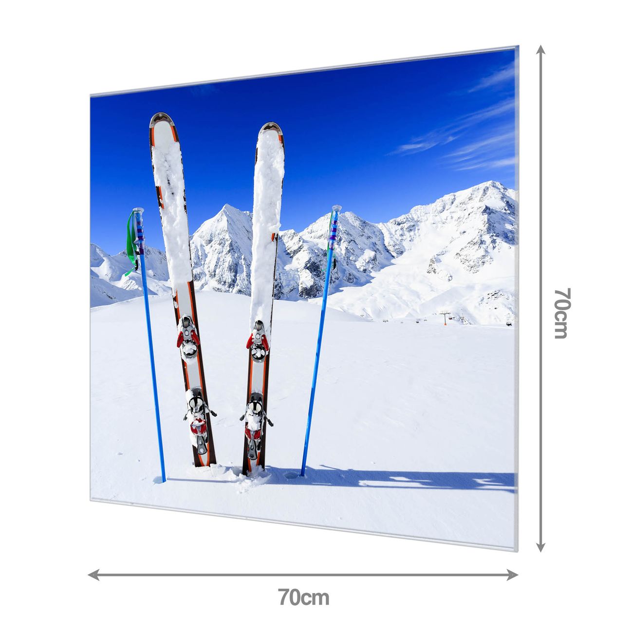 Material: 4mm Sicherheitsglas mit Metallrückwand Eigenschaften: beschreibbar, magnetisch, kratzfest Maße: 70x70x0,6cm, 10,50 kg schwer Motiv Nummer 11150 Apres Ski Zubehör: inklusive 4 Neodym-Magnete