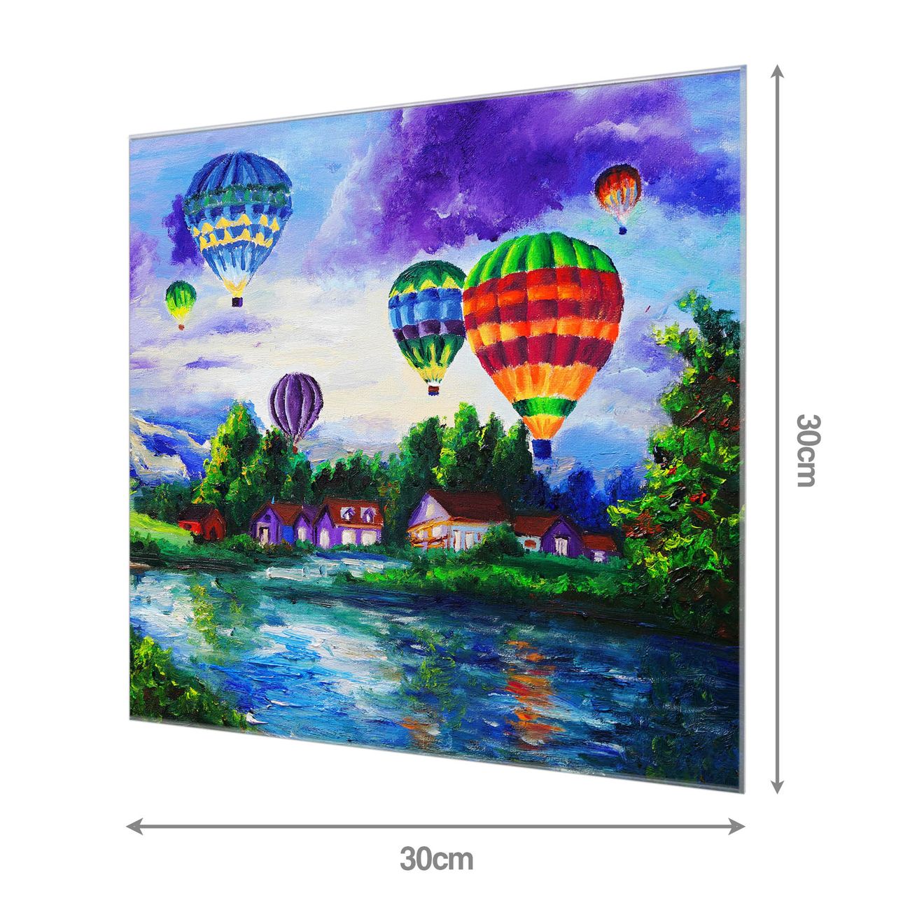 Material: 4mm Sicherheitsglas mit Metallrückwand Eigenschaften: beschreibbar, magnetisch, kratzfest Maße: 30x30x0,6cm, 1,89 kg schwer Motiv Nummer 12067 Ballons In Lila Wolken Zubehör: inklusive 4 Neodym-Magnete