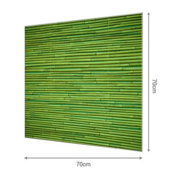 Material: 4mm Sicherheitsglas mit Metallrückwand Eigenschaften: beschreibbar, magnetisch, kratzfest Maße: 70x70x0,6cm, 10,50 kg schwer Motiv Nummer 10353 Bambus Grün Zubehör: inklusive 4 Neodym-Magnete