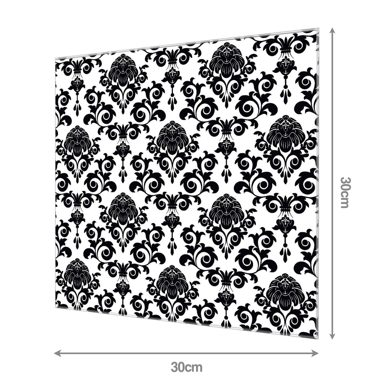 Material: 4mm Sicherheitsglas mit Metallrückwand Eigenschaften: beschreibbar, magnetisch, kratzfest Maße: 30x30x0,6cm, 1,89 kg schwer Motiv Nummer 10054 Barock Zubehör: inklusive 4 Neodym-Magnete