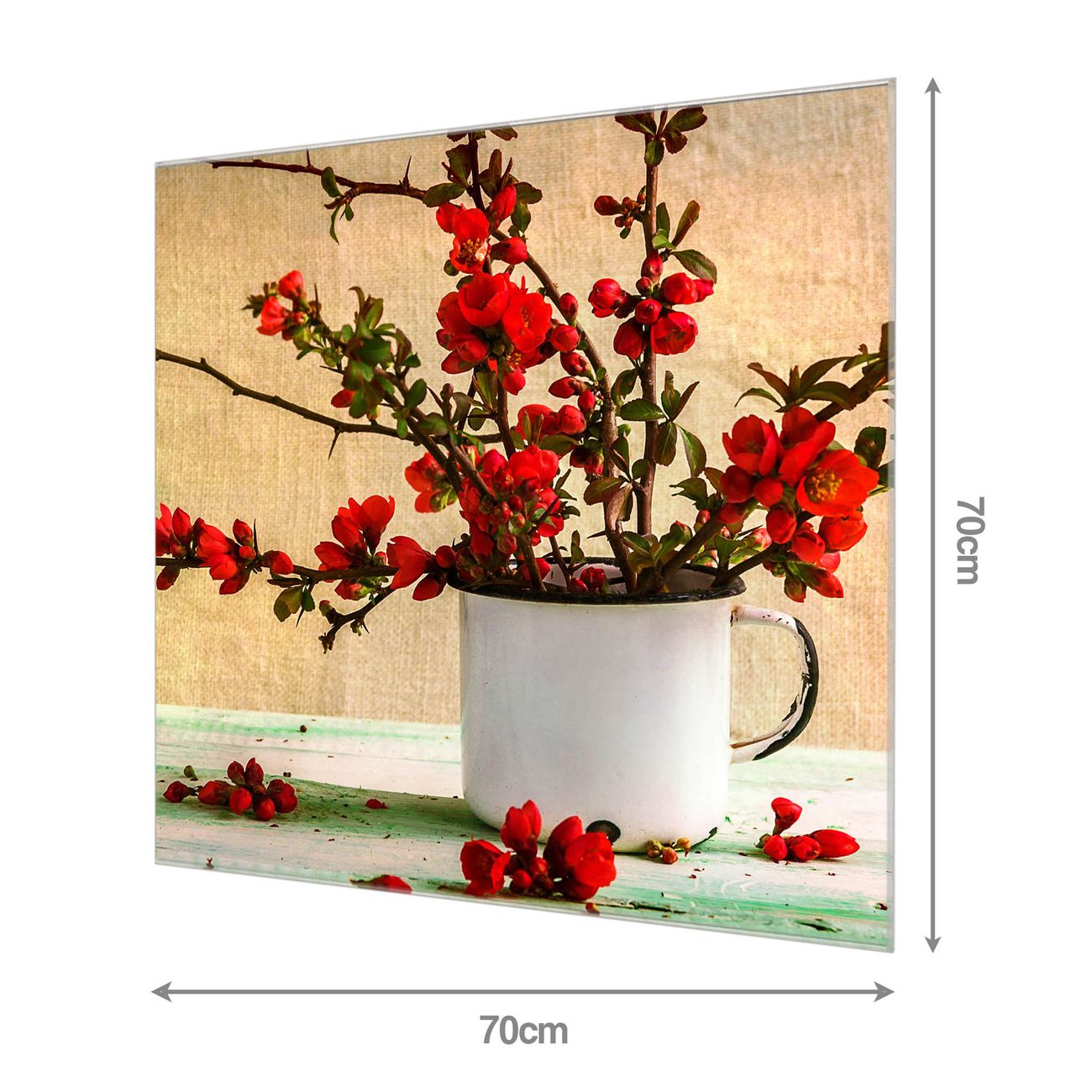 Material: 4mm Sicherheitsglas mit Metallrückwand Eigenschaften: beschreibbar, magnetisch, kratzfest Maße: 70x70x0,6cm, 10,50 kg schwer Motiv Nummer 12348 Berberitzen Zubehör: inklusive 4 Neodym-Magnete