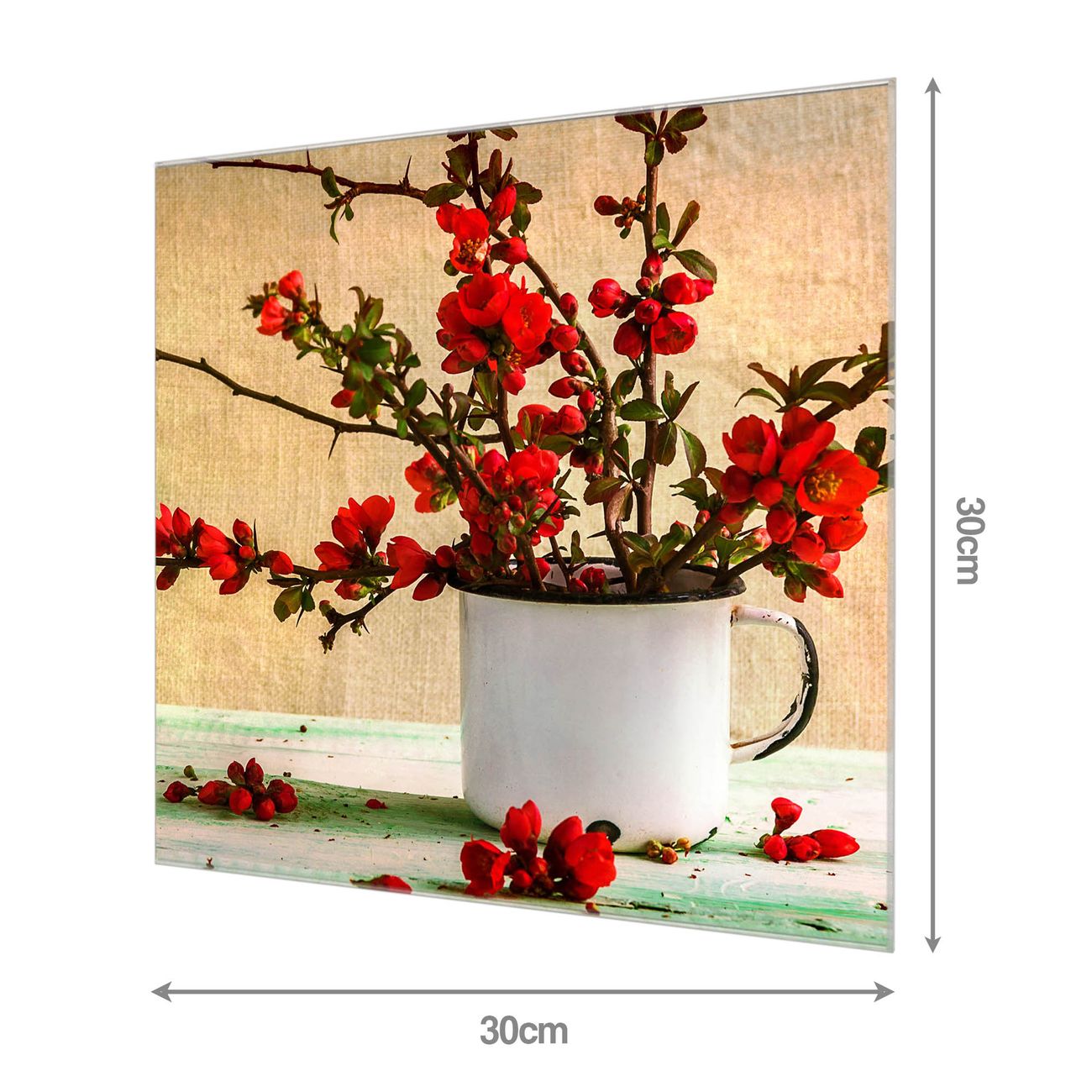 Material: 4mm Sicherheitsglas mit Metallrückwand Eigenschaften: beschreibbar, magnetisch, kratzfest Maße: 30x30x0,6cm, 1,89 kg schwer Motiv Nummer 12348 Berberitzen Zubehör: inklusive 4 Neodym-Magnete