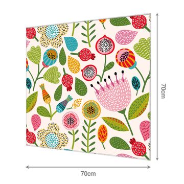 Material: 4mm Sicherheitsglas mit Metallrückwand Eigenschaften: beschreibbar, magnetisch, kratzfest Maße: 70x70x0,6cm, 10,50 kg schwer Motiv Nummer 11608 Blumen Naiv Zubehör: inklusive 4 Neodym-Magnete