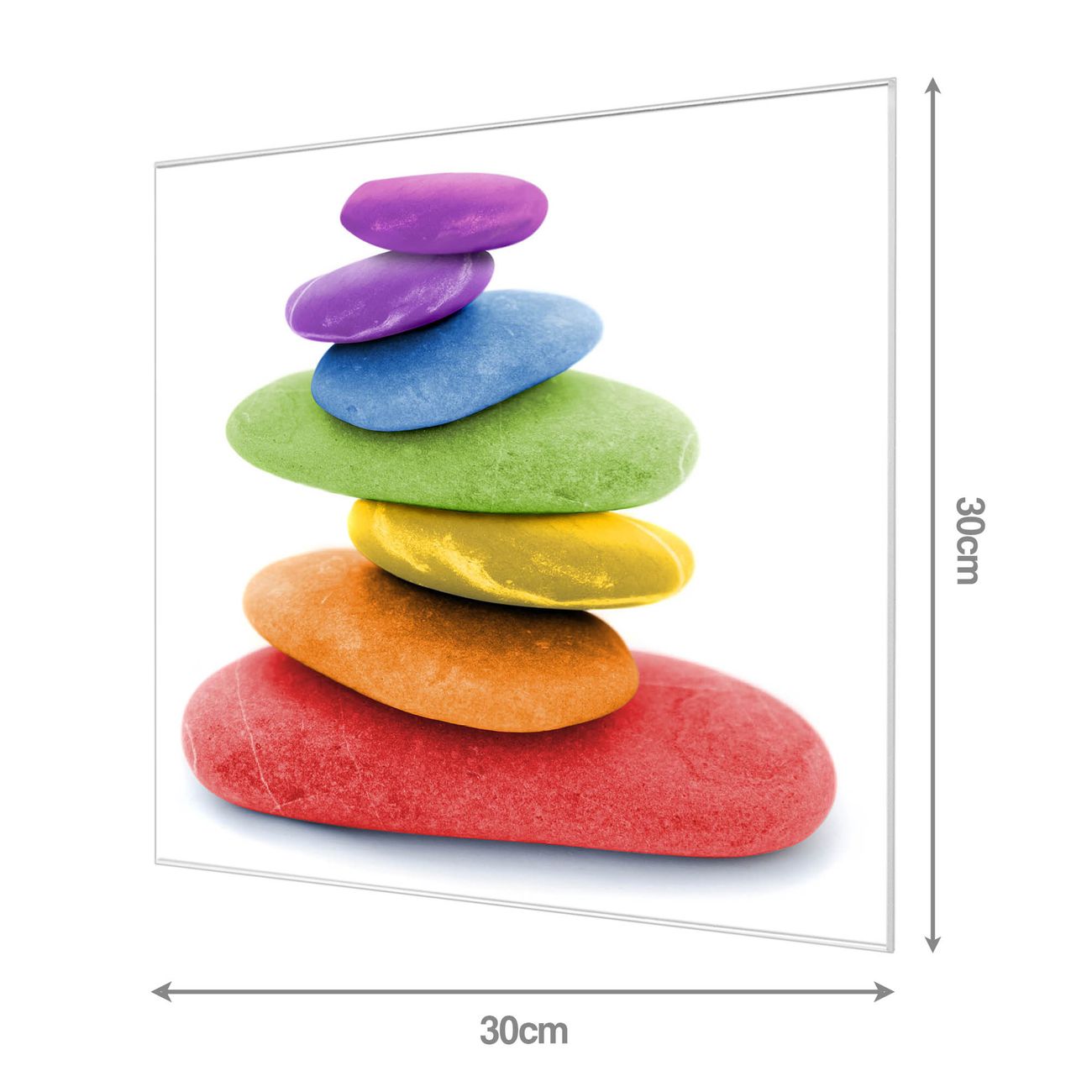 Material: 4mm Sicherheitsglas mit Metallrückwand Eigenschaften: beschreibbar, magnetisch, kratzfest Maße: 30x30x0,6cm, 1,89 kg schwer Motiv Nummer 10158 Coloured Stone Zubehör: inklusive 4 Neodym-Magnete