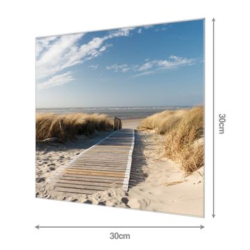 Material: 4mm Sicherheitsglas mit Metallrückwand Eigenschaften: beschreibbar, magnetisch, kratzfest Maße: 30x30x0,6cm, 1,89 kg schwer Motiv Nummer 10183 Dünen Zubehör: inklusive 4 Neodym-Magnete