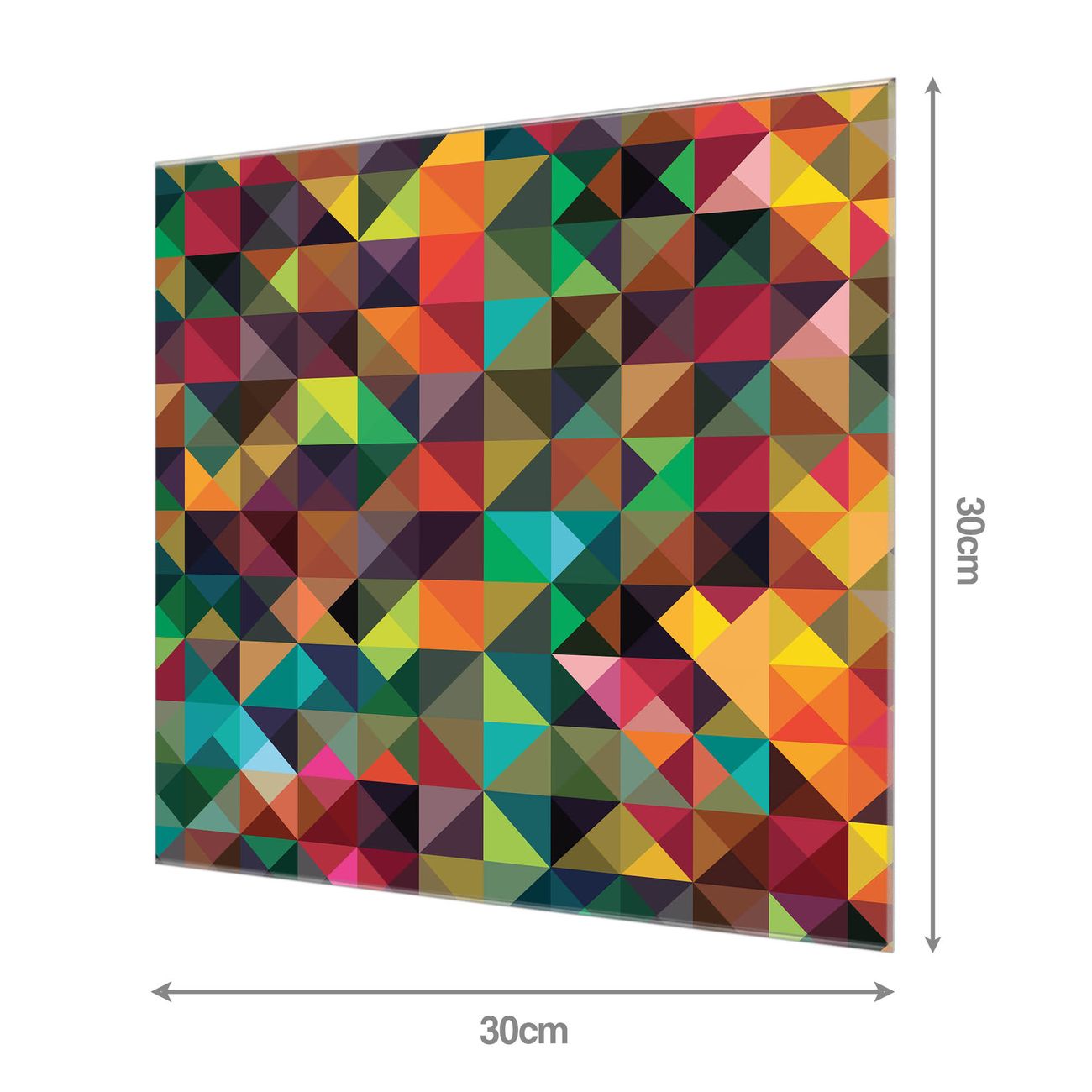 Material: 4mm Sicherheitsglas mit Metallrückwand Eigenschaften: beschreibbar, magnetisch, kratzfest Maße: 30x30x0,6cm, 1,89 kg schwer Motiv Nummer 12178 Dunkles Kaleidoskop Zubehör: inklusive 4 Neodym-Magnete