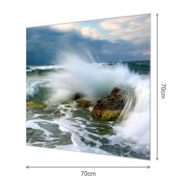 Material: 4mm Sicherheitsglas mit Metallrückwand Eigenschaften: beschreibbar, magnetisch, kratzfest Maße: 70x70x0,6cm, 10,50 kg schwer Motiv Nummer 12255 Einsteinwelle Zubehör: inklusive 4 Neodym-Magnete