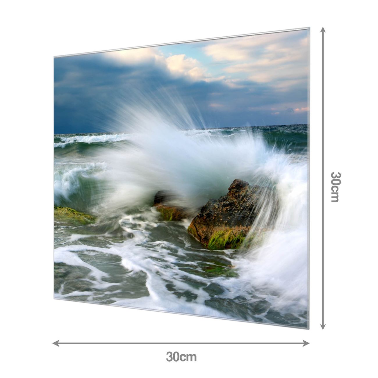 Material: 4mm Sicherheitsglas mit Metallrückwand Eigenschaften: beschreibbar, magnetisch, kratzfest Maße: 30x30x0,6cm, 1,89 kg schwer Motiv Nummer 12255 Einsteinwelle Zubehör: inklusive 4 Neodym-Magnete