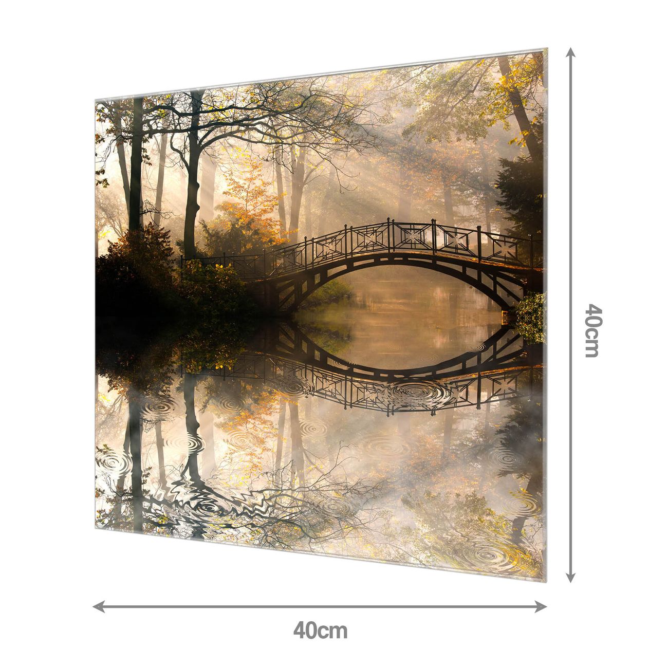 Material: 4mm Sicherheitsglas mit Metallrückwand Eigenschaften: beschreibbar, magnetisch, kratzfest Maße: 40x40x0,6cm, 3,36 kg schwer Motiv Nummer 10450 Englischer Garten Zubehör: inklusive 4 Neodym-Magnete