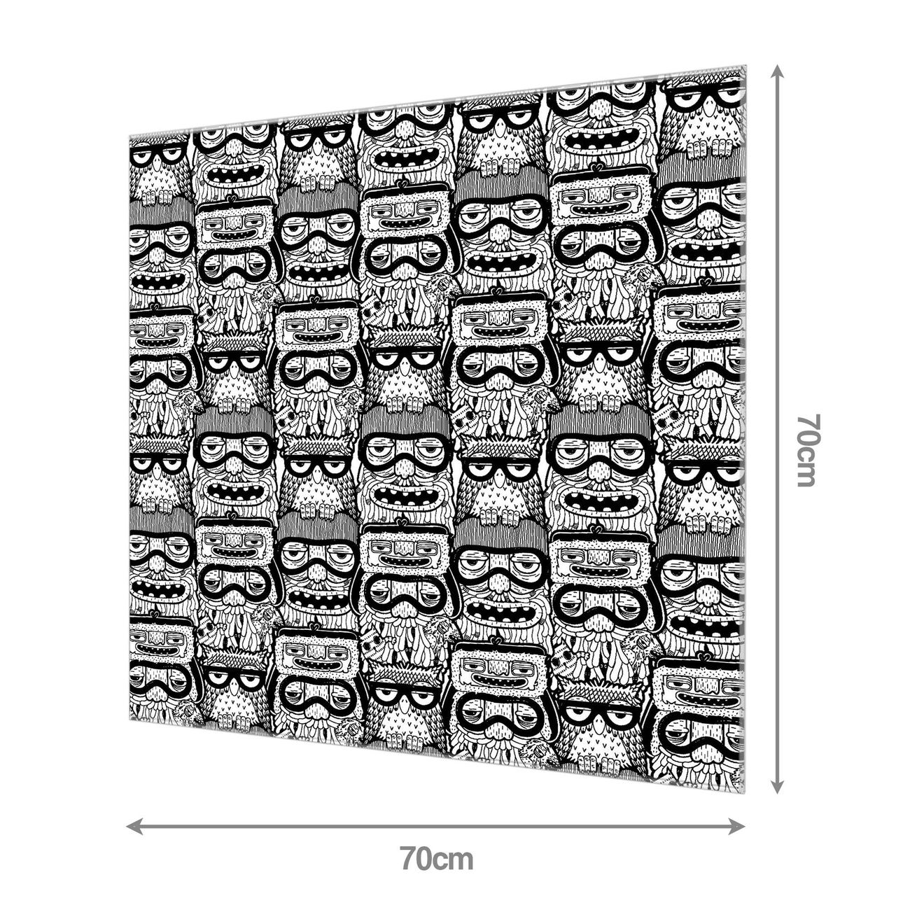 Material: 4mm Sicherheitsglas mit Metallrückwand Eigenschaften: beschreibbar, magnetisch, kratzfest Maße: 70x70x0,6cm, 10,50 kg schwer Motiv Nummer 11192 Eule und Olaf Zubehör: inklusive 4 Neodym-Magnete