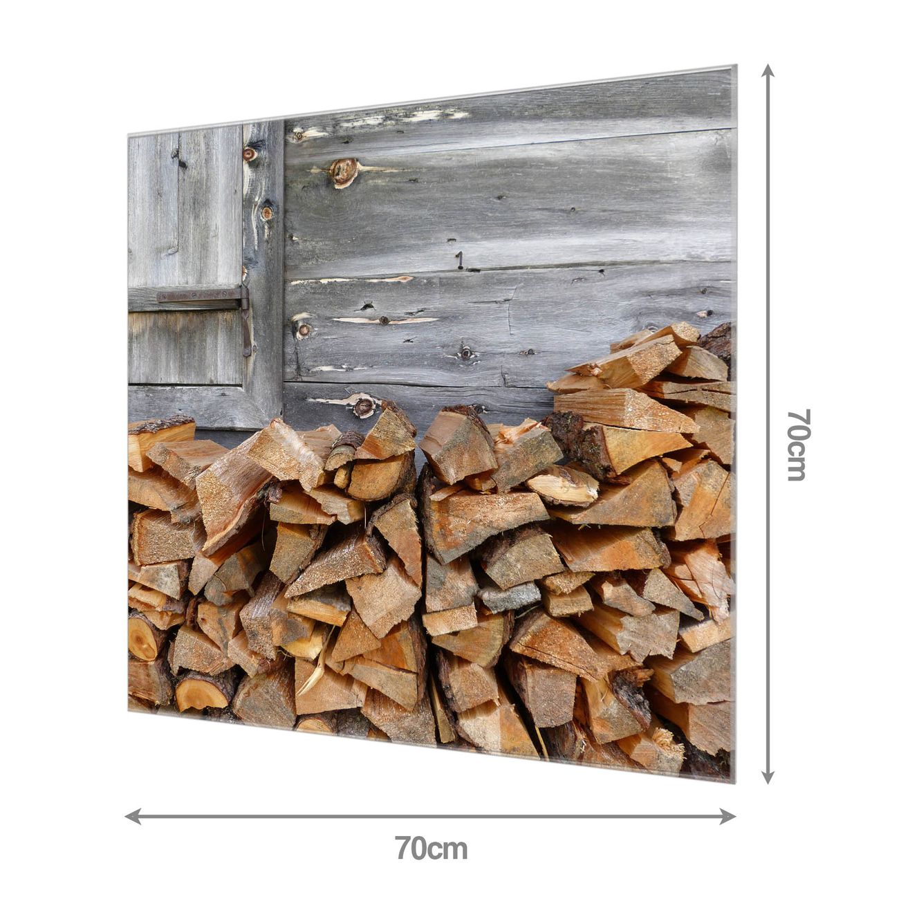 Material: 4mm Sicherheitsglas mit Metallrückwand Eigenschaften: beschreibbar, magnetisch, kratzfest Maße: 70x70x0,6cm, 10,50 kg schwer Motiv Nummer 11294 Feuerholz Zubehör: inklusive 4 Neodym-Magnete
