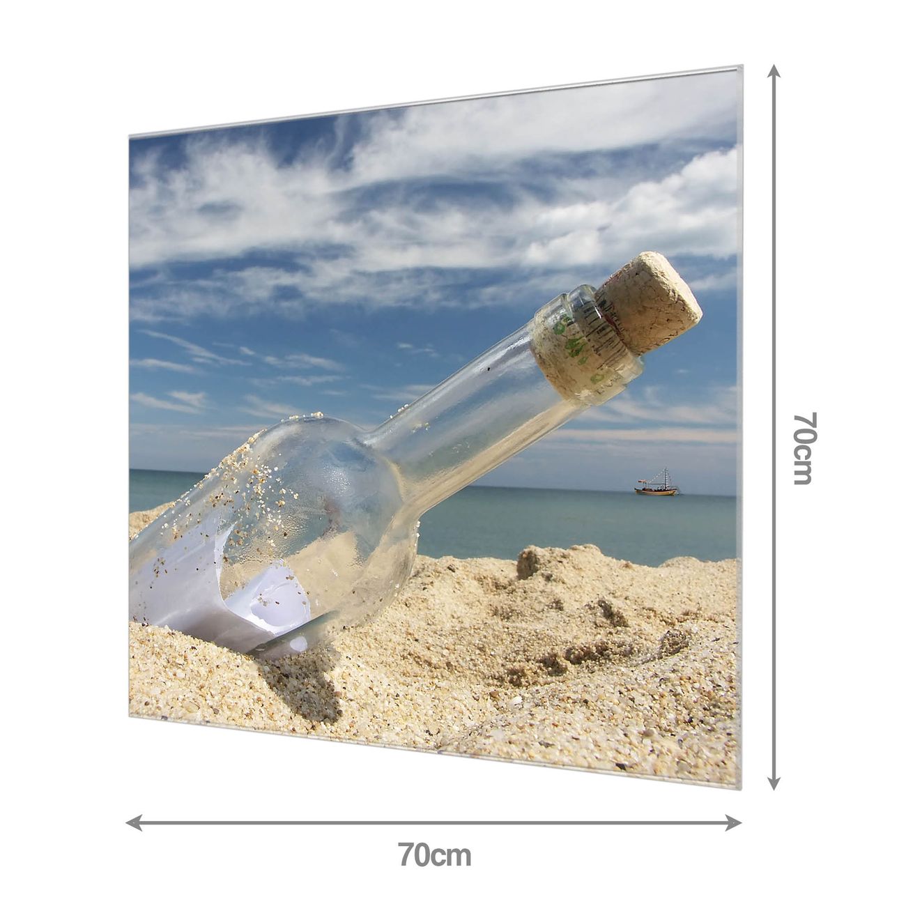 Material: 4mm Sicherheitsglas mit Metallrückwand Eigenschaften: beschreibbar, magnetisch, kratzfest Maße: 70x70x0,6cm, 10,50 kg schwer Motiv Nummer 10286 Flaschenpost Zubehör: inklusive 4 Neodym-Magnete