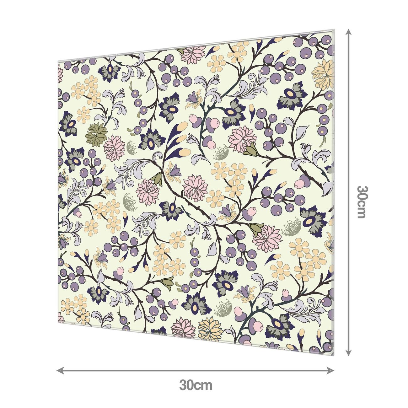 Material: 4mm Sicherheitsglas mit Metallrückwand Eigenschaften: beschreibbar, magnetisch, kratzfest Maße: 30x30x0,6cm, 1,89 kg schwer Motiv Nummer 10552 Florale Tapete Zubehör: inklusive 4 Neodym-Magnete