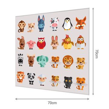 Material: 4mm Sicherheitsglas mit Metallrückwand Eigenschaften: beschreibbar, magnetisch, kratzfest Maße: 70x70x0,6cm, 10,50 kg schwer Motiv Nummer 11373 Freunde Zubehör: inklusive 4 Neodym-Magnete