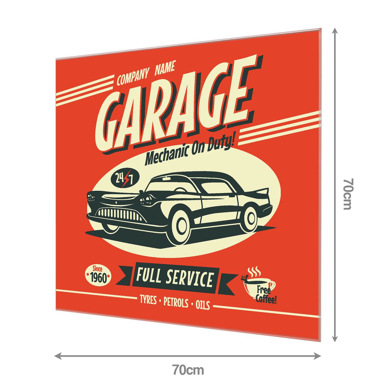 Material: 4mm Sicherheitsglas mit Metallrückwand Eigenschaften: beschreibbar, magnetisch, kratzfest Maße: 70x70x0,6cm, 10,50 kg schwer Motiv Nummer 11152 Full Service Zubehör: inklusive 4 Neodym-Magnete