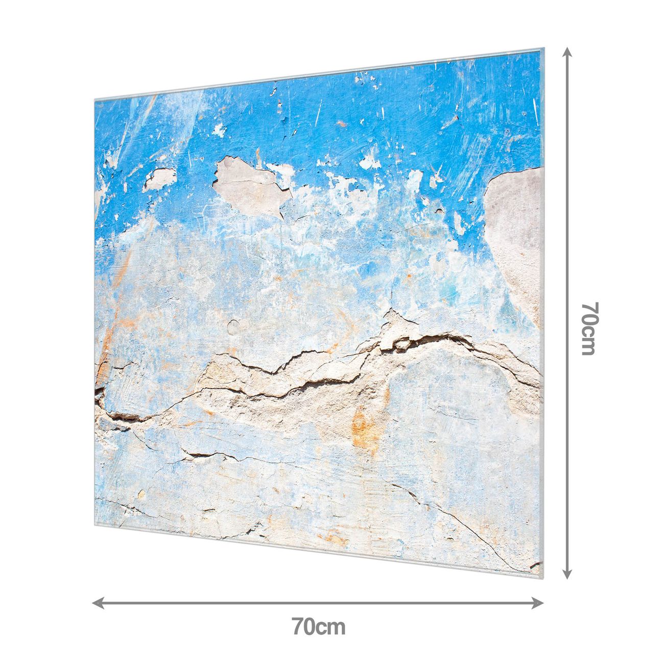 Material: 4mm Sicherheitsglas mit Metallrückwand Eigenschaften: beschreibbar, magnetisch, kratzfest Maße: 70x70x0,6cm, 10,50 kg schwer Motiv Nummer 11761 Gebrochene Wand Zubehör: inklusive 4 Neodym-Magnete