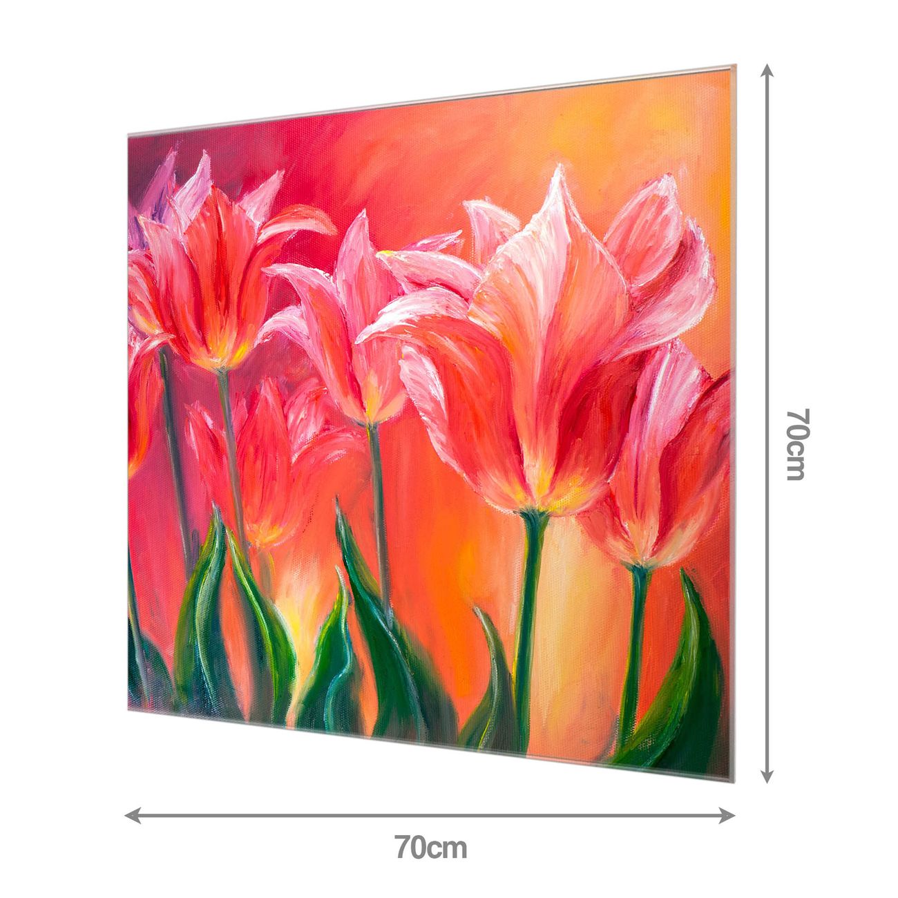 Material: 4mm Sicherheitsglas mit Metallrückwand Eigenschaften: beschreibbar, magnetisch, kratzfest Maße: 70x70x0,6cm, 10,50 kg schwer Motiv Nummer 12310 Gemalte Tulpen Zubehör: inklusive 4 Neodym-Magnete