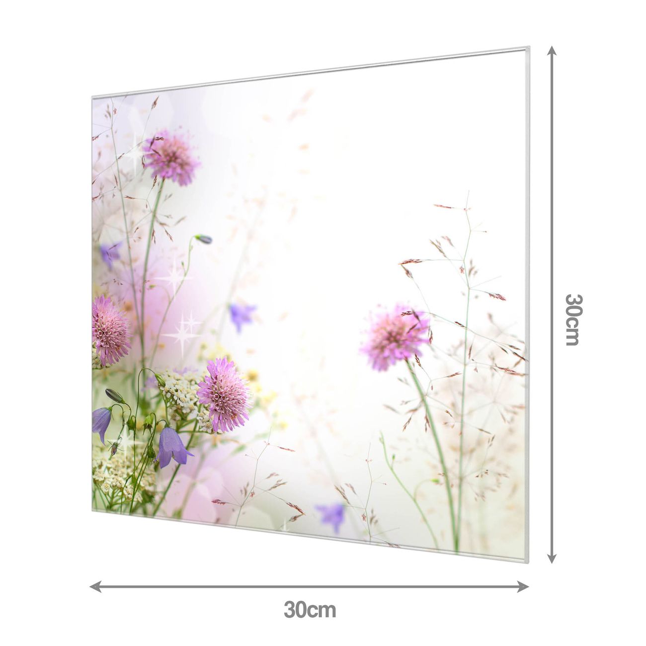 Material: 4mm Sicherheitsglas mit Metallrückwand Eigenschaften: beschreibbar, magnetisch, kratzfest Maße: 30x30x0,6cm, 1,89 kg schwer Motiv Nummer 11269 Glitzernde Wiese Zubehör: inklusive 4 Neodym-Magnete