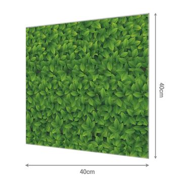 Material: 4mm Sicherheitsglas mit Metallrückwand Eigenschaften: beschreibbar, magnetisch, kratzfest Maße: 40x40x0,6cm, 3,36 kg schwer Motiv Nummer 10910 Grüne Blätter Zubehör: inklusive 4 Neodym-Magnete