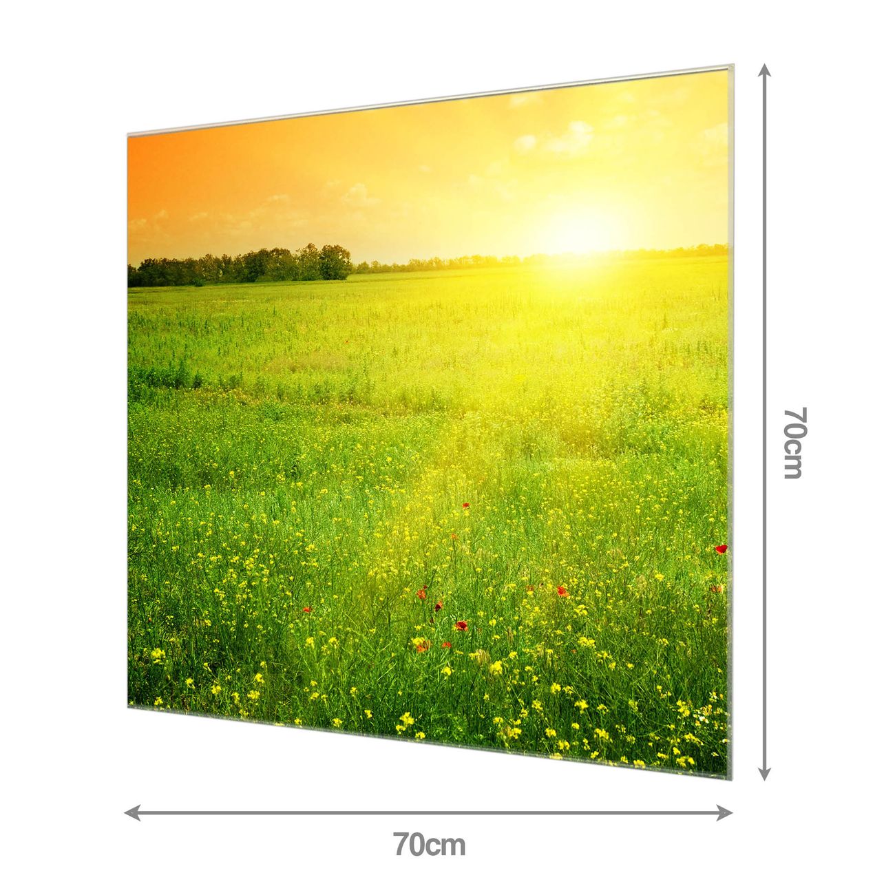 Material: 4mm Sicherheitsglas mit Metallrückwand Eigenschaften: beschreibbar, magnetisch, kratzfest Maße: 70x70x0,6cm, 10,50 kg schwer Motiv Nummer 10305 Guten Morgen 2 Zubehör: inklusive 4 Neodym-Magnete