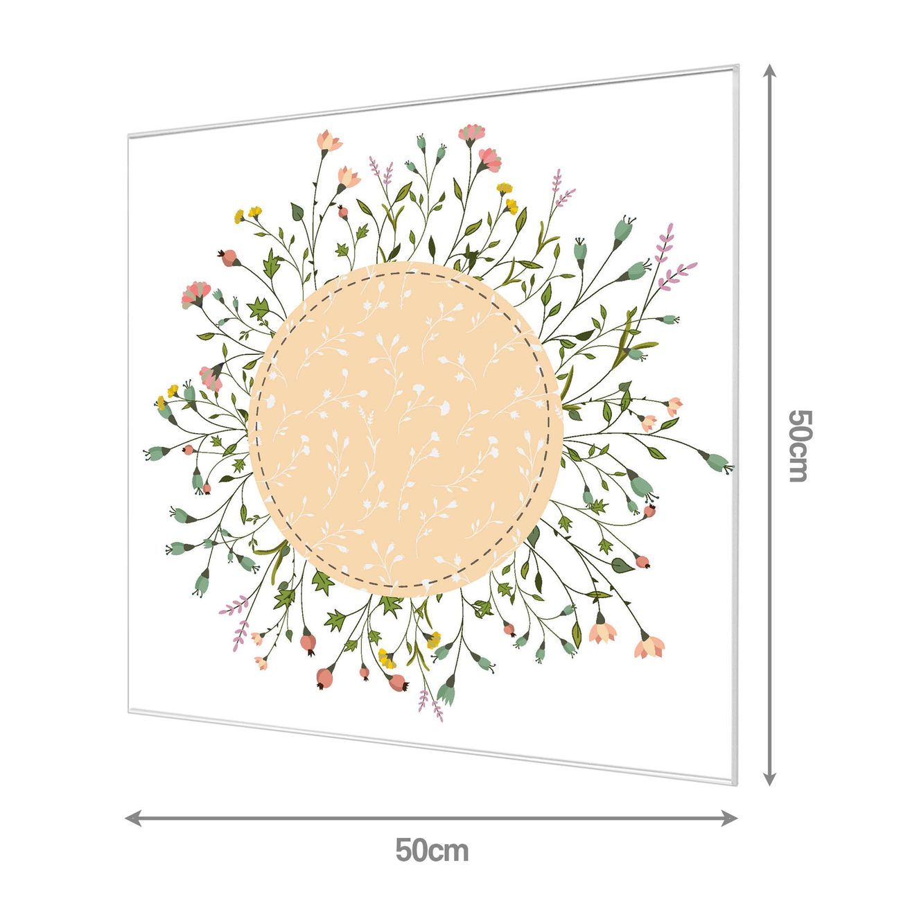Material  4mm Sicherheitsglas mit Metallrückwand Eigenschaften  beschreibbar, magnetisch, kratzfest Maße  50x50x0,6cm, 5,25 kg schwer Motiv  Nummer 10926 Hibiskus Kreis Zubehör  inklusive 4 Neodym-Magnete