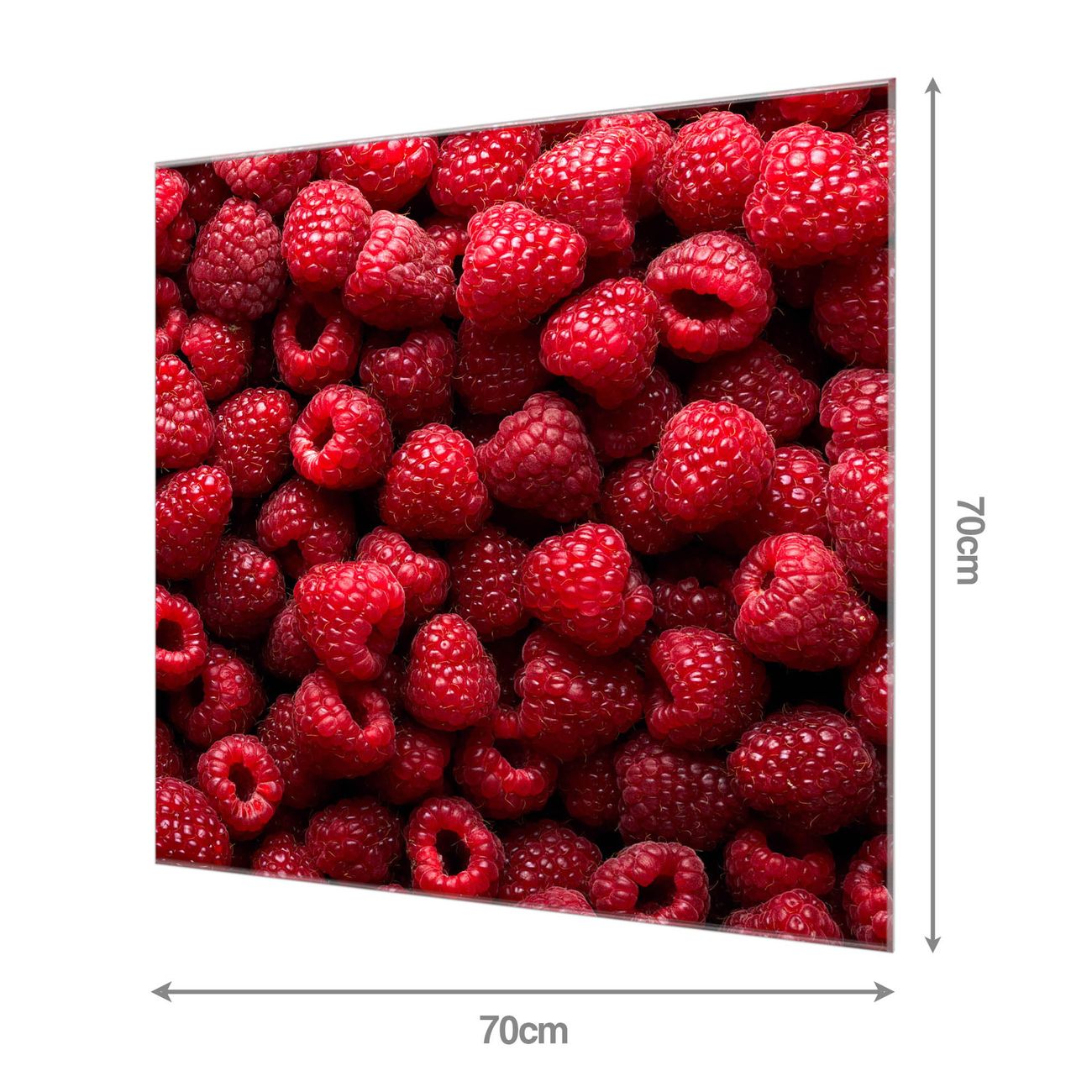 Material: 4mm Sicherheitsglas mit Metallrückwand Eigenschaften: beschreibbar, magnetisch, kratzfest Maße: 70x70x0,6cm, 10,50 kg schwer Motiv Nummer 11600 Himbeeren Zubehör: inklusive 4 Neodym-Magnete