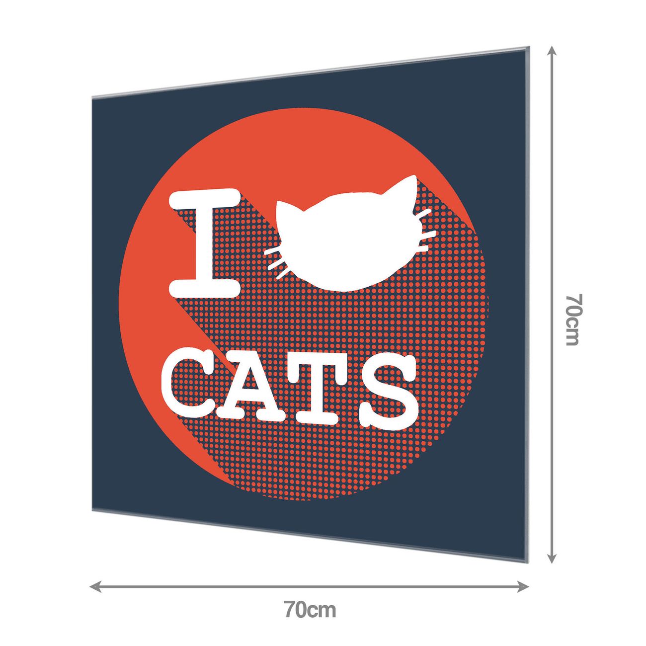 Material: 4mm Sicherheitsglas mit Metallrückwand Eigenschaften: beschreibbar, magnetisch, kratzfest Maße: 70x70x0,6cm, 10,50 kg schwer Motiv Nummer 12134 I Love Cats Zubehör: inklusive 4 Neodym-Magnete