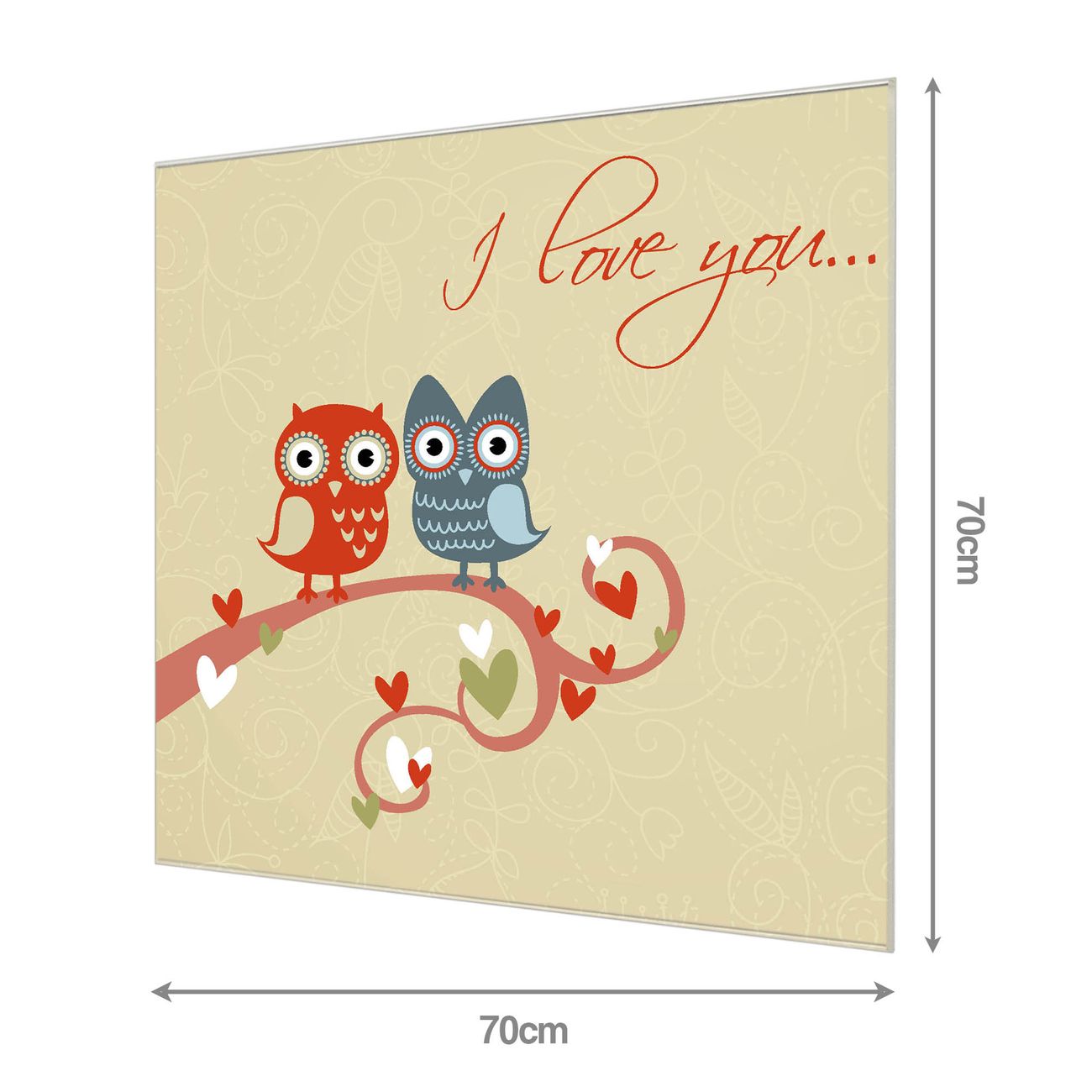 Material: 4mm Sicherheitsglas mit Metallrückwand Eigenschaften: beschreibbar, magnetisch, kratzfest Maße: 70x70x0,6cm, 10,50 kg schwer Motiv Nummer 10312 I Love You Zubehör: inklusive 4 Neodym-Magnete